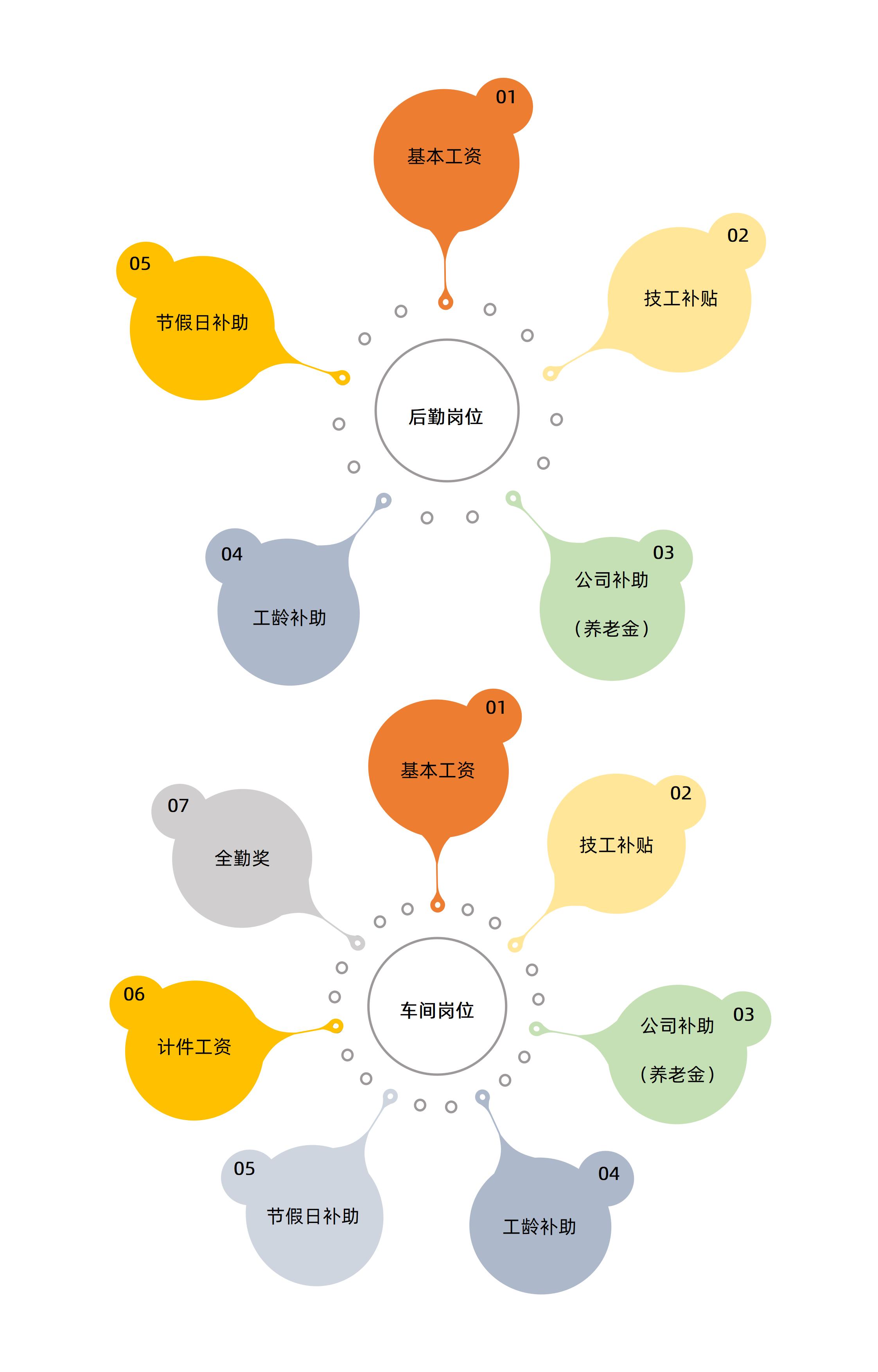 后勤:基本工資+技工補貼+公司補助(養(yǎng)老金)+工齡補助+節(jié)假日補助